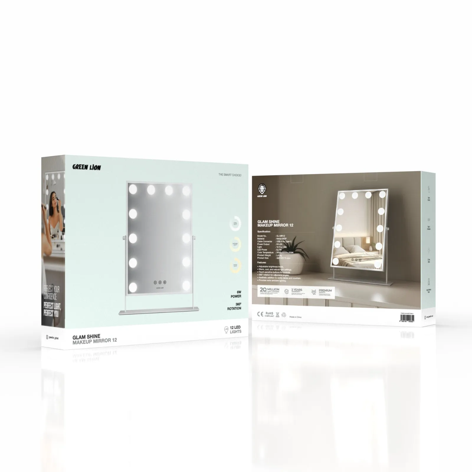 آینه آرایشی گرین لاین مدل GLAM SHINE را برای تجربهای روشن، زیبا و حرفهای انتخاب کنید. این آینه با ۱۲ چراغ LED قابل تنظیم، نور کافی برای آرایش روزانه فراهم میکند و جلوهای طبیعی و شفاف ایجاد میکند.