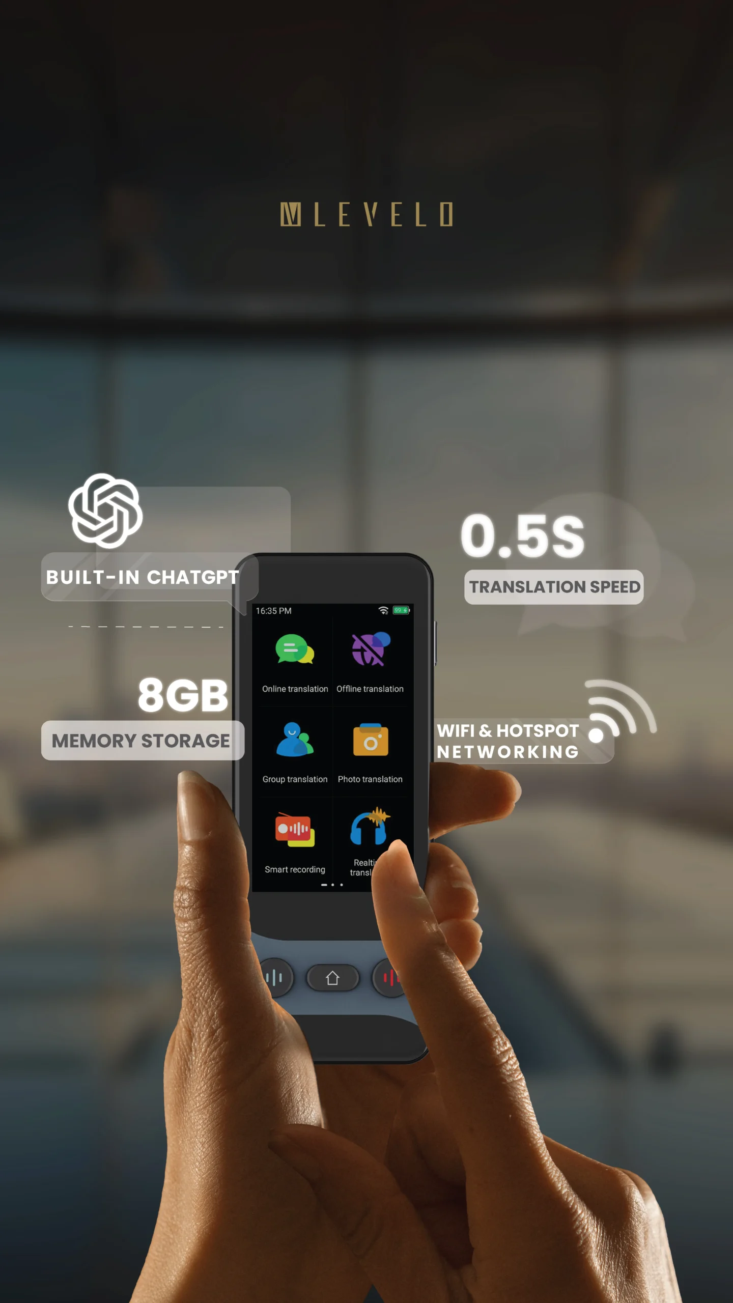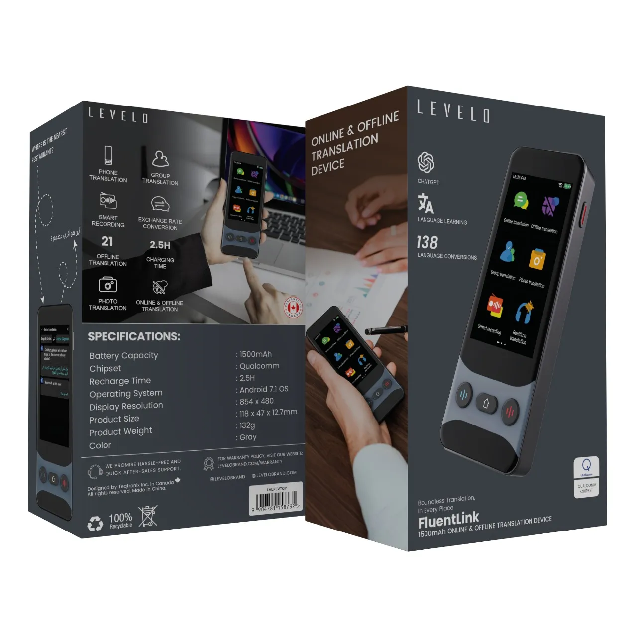 ترجمهکننده صوتی مدل Levelo FluentLink با پشتیبانی از ۱۳۹ زبان، ترجمه آنلاین و آفلاین، و امکاناتی مانند ترجمه عکس و ضبط هوشمند، انتخابی مناسب برای ارتباطات سریع و مؤثر است.
