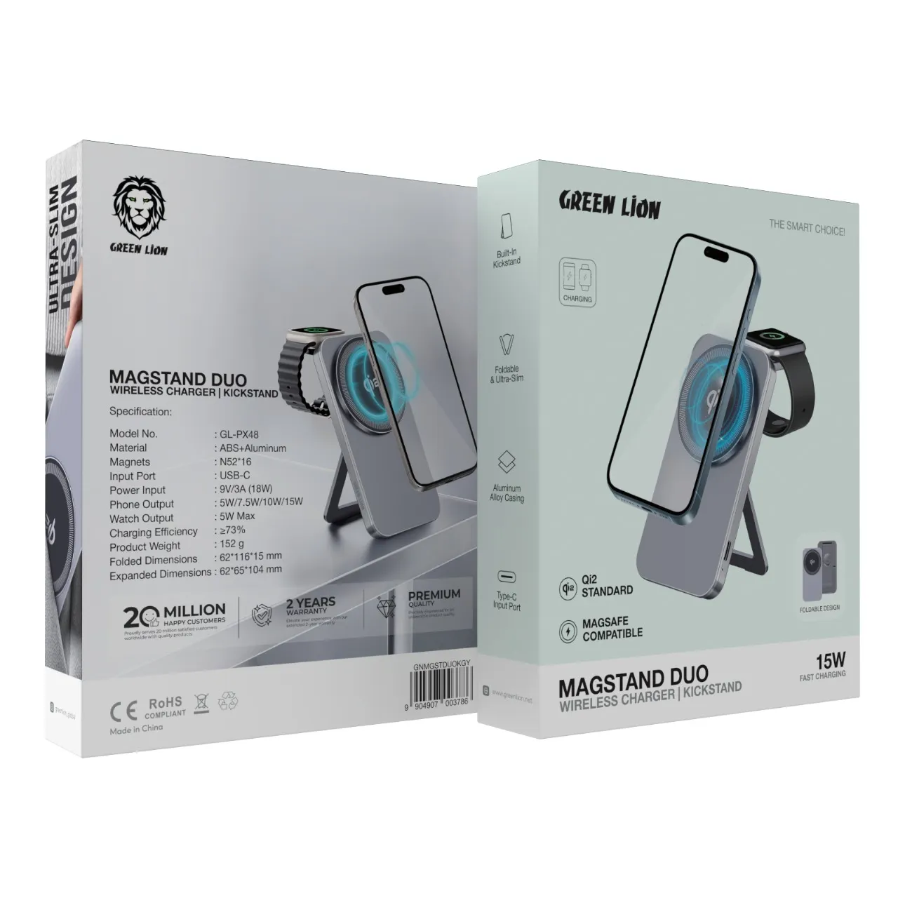 شارژر بی‌سیم Magstand Duo مدل Kickstand 15W گرین لاین