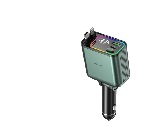 شارژر فندکی گرین لاین Retractable 90W Car Charger PD 65W راهکاری قدرتمند و هوشمند برای تأمین انرژی دستگاه‌های دیجیتال شما در مسیر است. با توان کلی 90 وات، این محصول از یک خروجی USB-C با فناوری PD 65 وات، یک خروجی USB-A و دو کابل داخلی جمع‌شونده (Type-C و Lightning) به طول 80 سانتی‌متر بهره می‌برد. مجموع این قابلیت‌ها، امکان شارژ سریع و همزمان انواع گوشی، تبلت، لپ‌تاپ، پاوربانک و لوازم دیجیتال را فراهم می‌سازد.