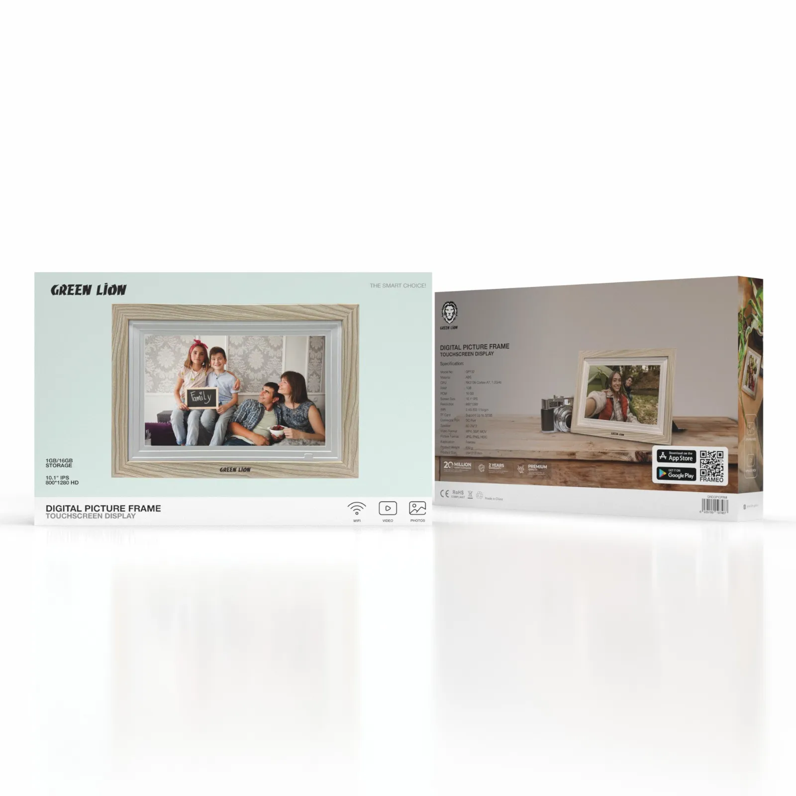 فریم دیجیتال گرین لاین لمسی 10.1 اینچ با فریم چوبی