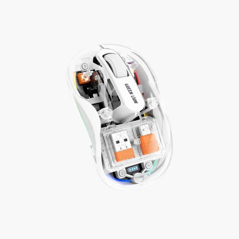 ماوس بیسیم گرینلاین مدل Turtle با طراحی شفاف و مدرن، اتصال سهگانه (USB، بلوتوث، گیرنده 2.4GHz)، برد ۱۰ متری و باتری ۴۰۰ میلیآمپرساعتی؛ دقیق، بادوام و مناسب کار و بازی.