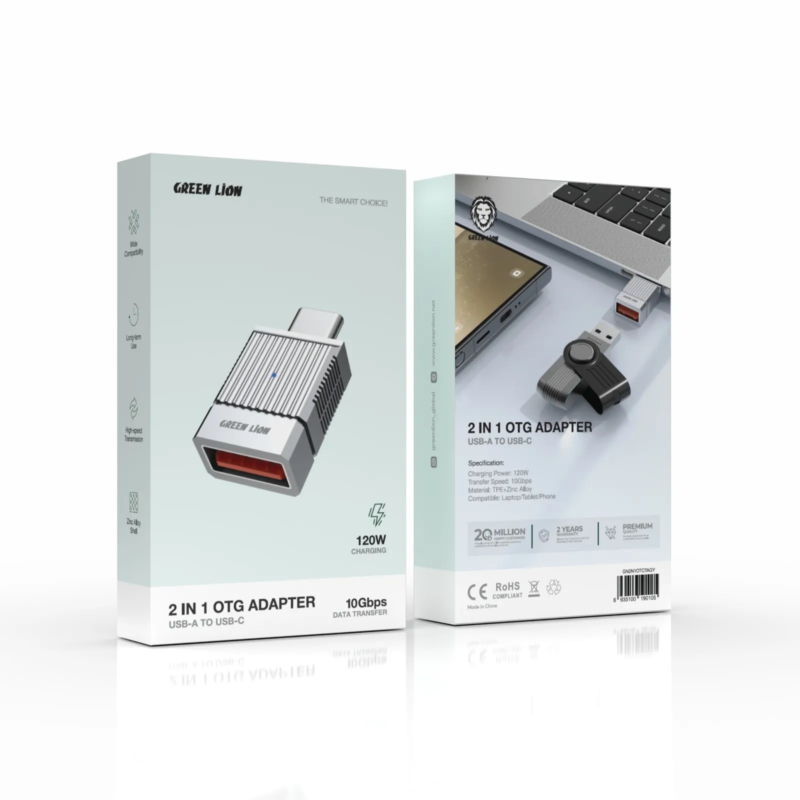 مبدل OTG گرین لاین مدل GN2N1OTCTAGY اتصال USB-A به USB-C را با سرعت انتقال 10Gbps و توان 120 وات فراهم می‌کند. جنس مقاوم TPE و آلیاژ روی دوام و کارایی فوق‌العاده را تضمین می‌کند و برای همه دستگاه‌ها مناسب است.
