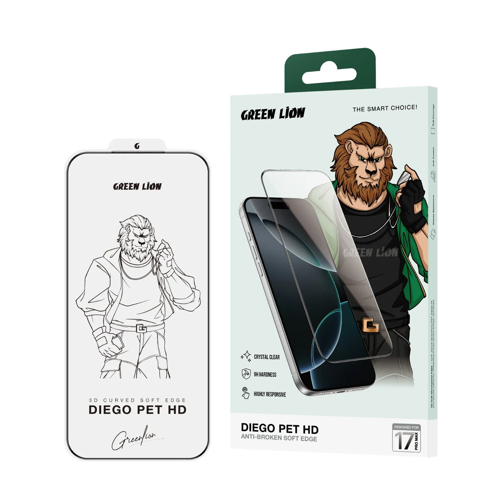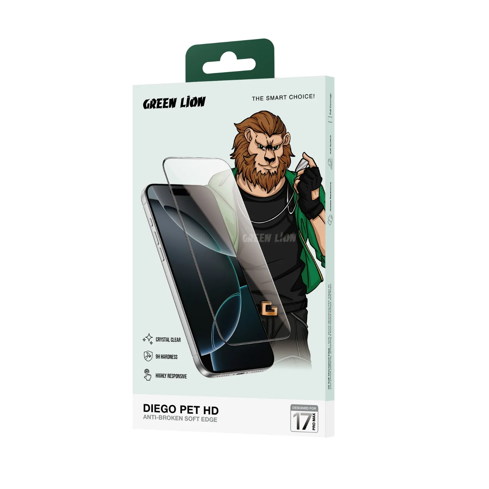 محافظ صفحه آیفون 17 پرو مکس مدل دیگو پت شفاف HD گرین لاین