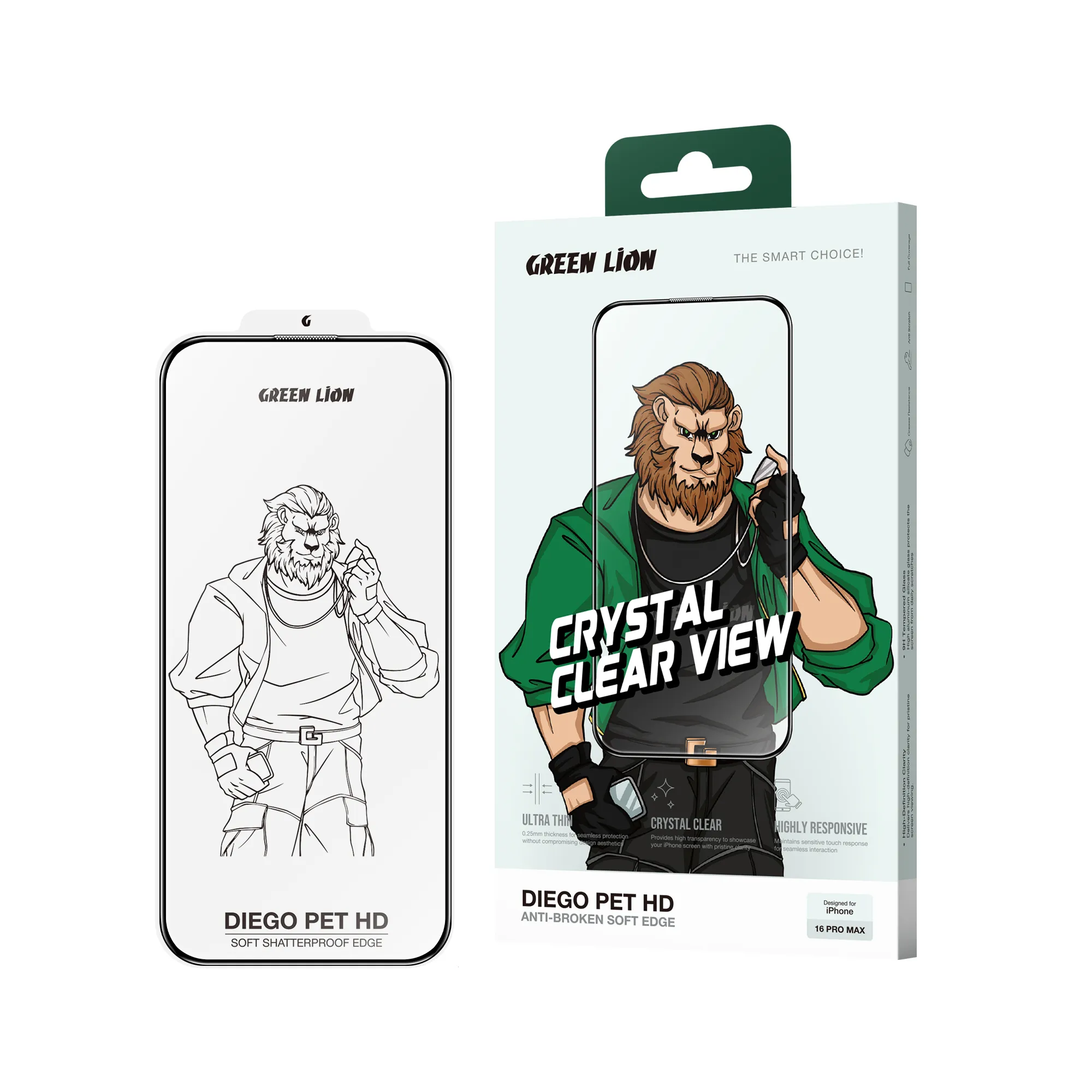 محافظ صفحه ضدشکست شفاف آیفون 16 پرو مکس مدل Diego Pet HD گرین لاین