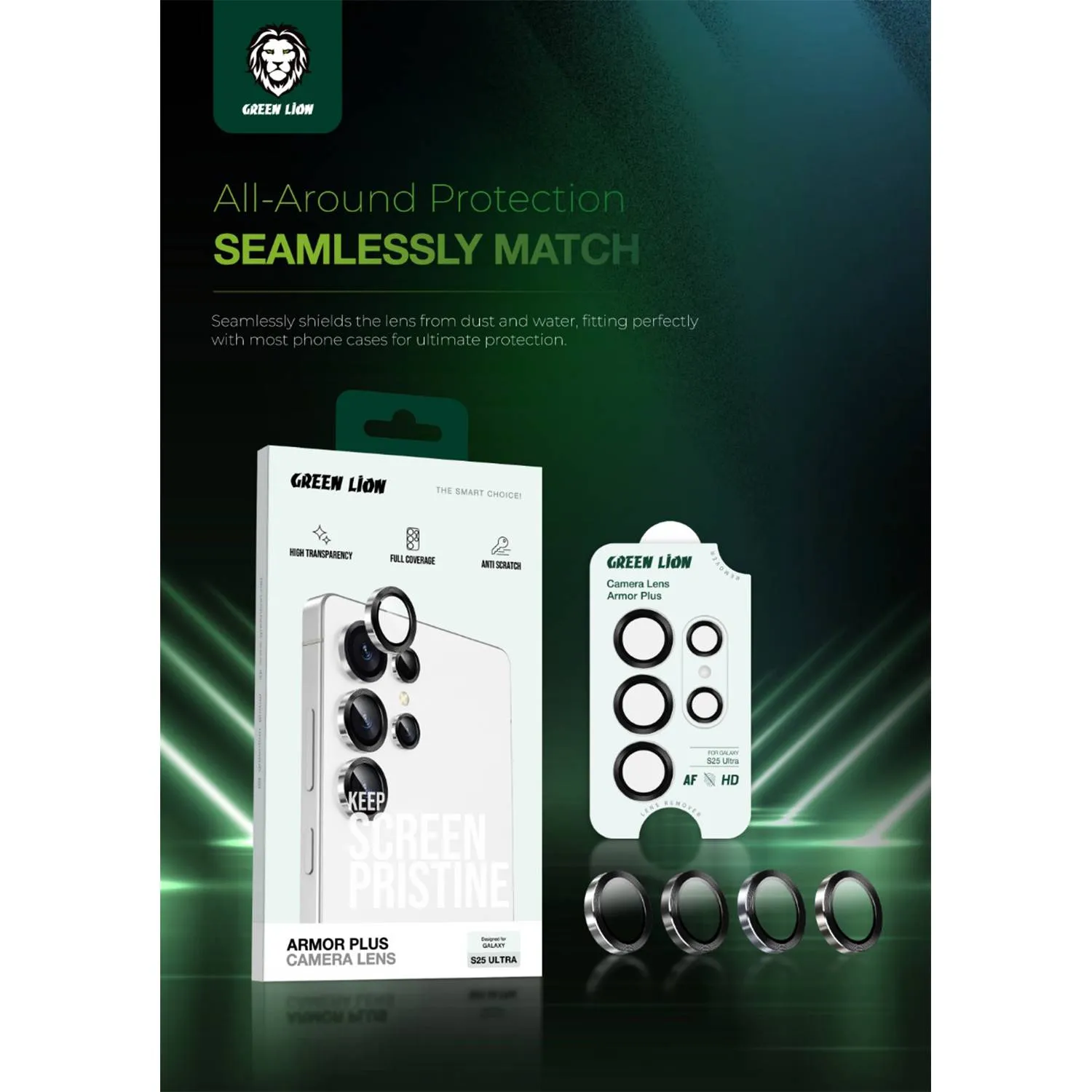 محافظ لنز دوربین سامسونگ S25 اولترا مدل آرمور پلاس گرینلاین