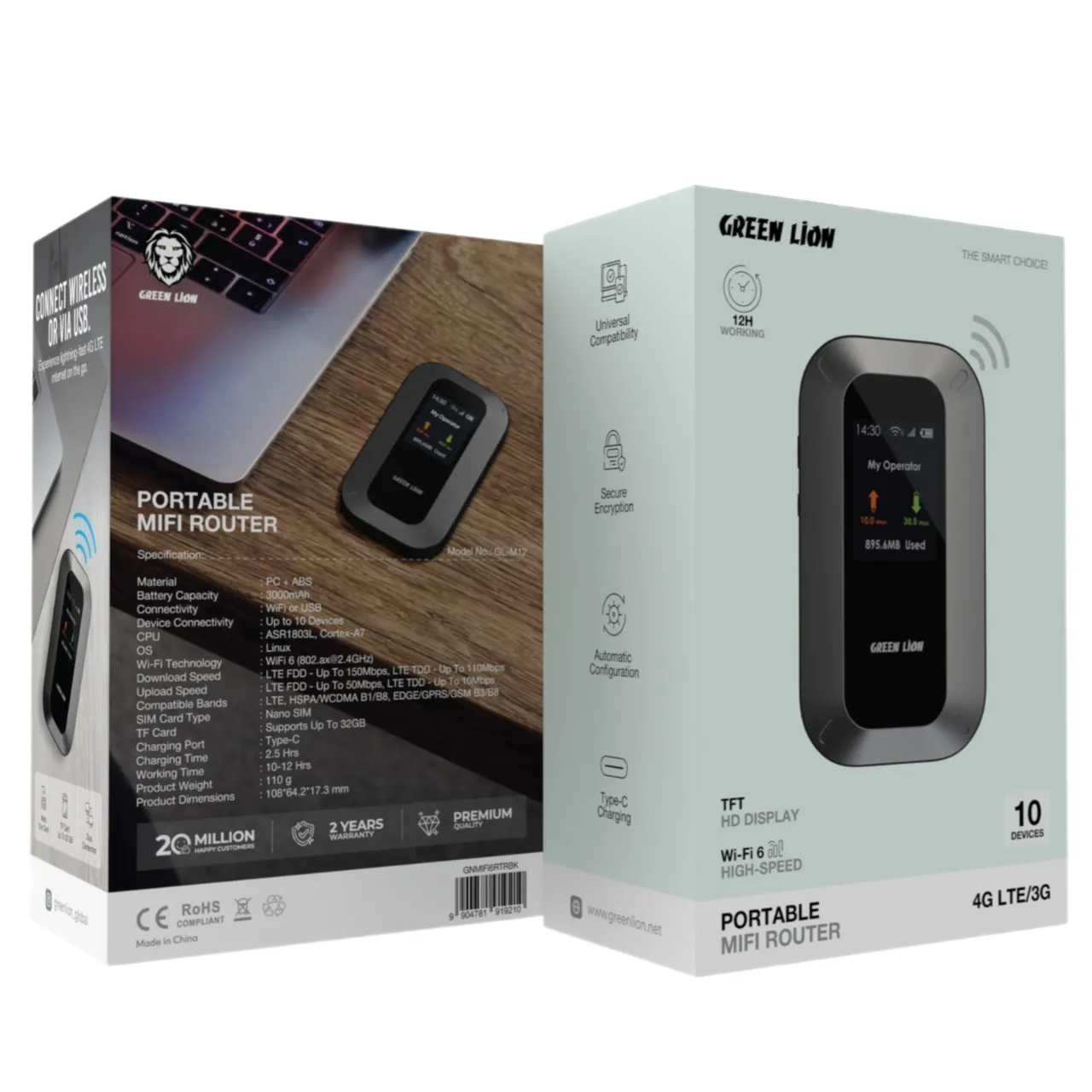 رمزگذاری امن و پیکربندی خودکار استفاده از مودم را ساده و مطمئن می‌سازد. با باتری قدرتمند ۳۰۰۰ میلی‌آمپرساعت تا ۱۲ ساعت به اینترنت متصل می‌مانید. درگاه Type‑C نیز امکان شاژ سریع را تنها در ۲٫۵ ساعت فراهم می‌کند.