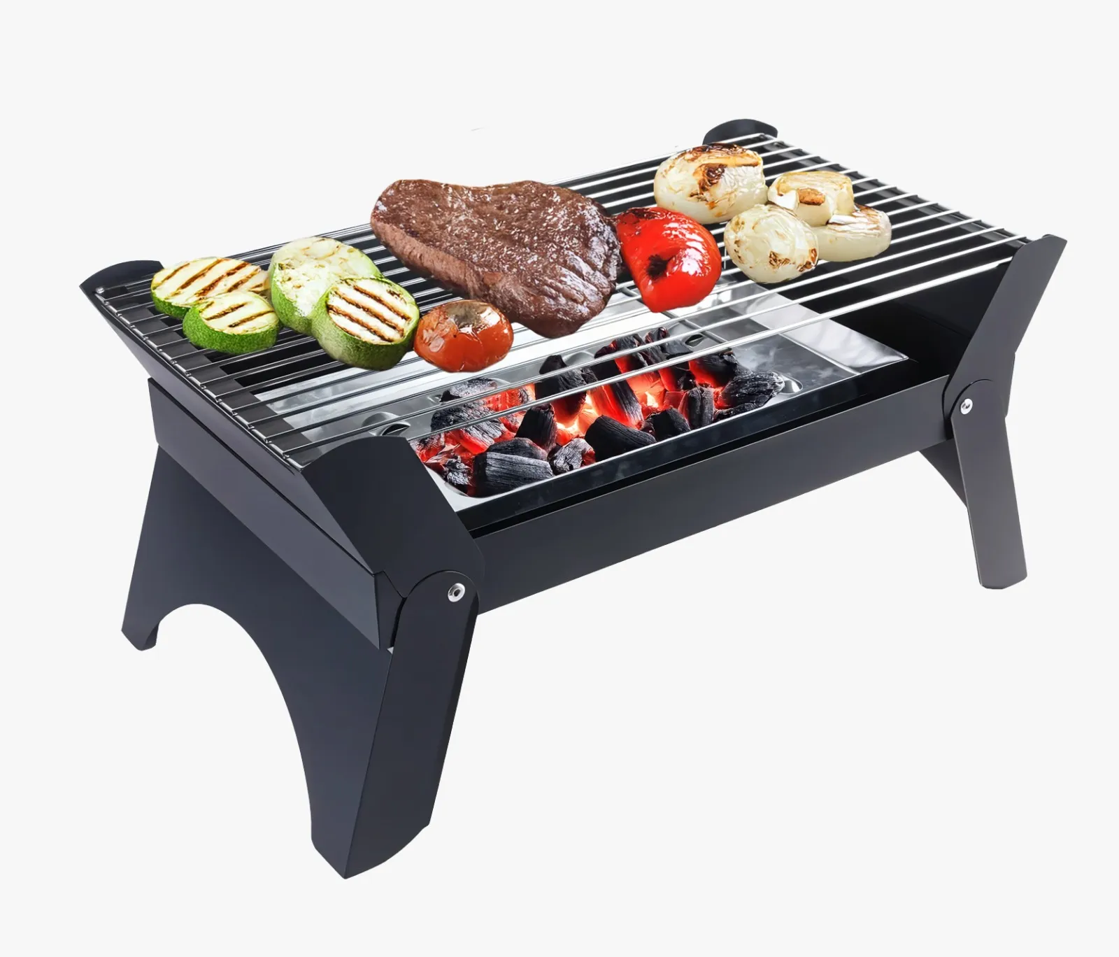 پایههای تاشو، تهویه هوا، صفحه گریل جداشونده، طراحی کمجا، سینی ذغال مقاوم |