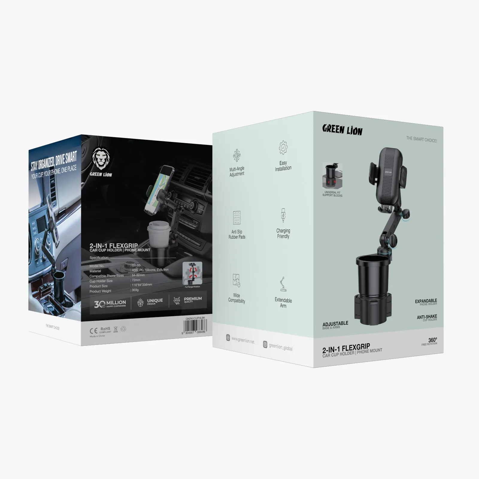نگهدارنده گوشی و جا لیوانی خودرو مدل ۲ در ۱ گرین لاین یک محصول کاربردی و مقاوم است که برای سفرهای شما طراحی شده است. این محصول با ترکیب یک نگهدارنده گوشی و جا لیوانی در یک دستگاه جمع و جور، برای تمامی رانندگان مناسب است. جنس آن از مواد مقاوم مانند ABS، PC، سیلیکون، EVA و آهن ساخته شده که به طول عمر و دوام آن کمک می‌کند.