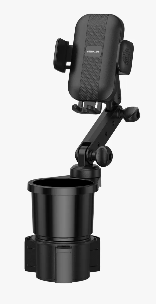 نگهدارنده گوشی و جا لیوانی خودرو مدل ۲ در ۱ گرین لاین، با طراحی فشرده و مقاوم، شامل یک پایه گوشی قابل تنظیم و جا لیوانی ضد لرزش است که به راحتی در خودرو نصب می‌شود.
