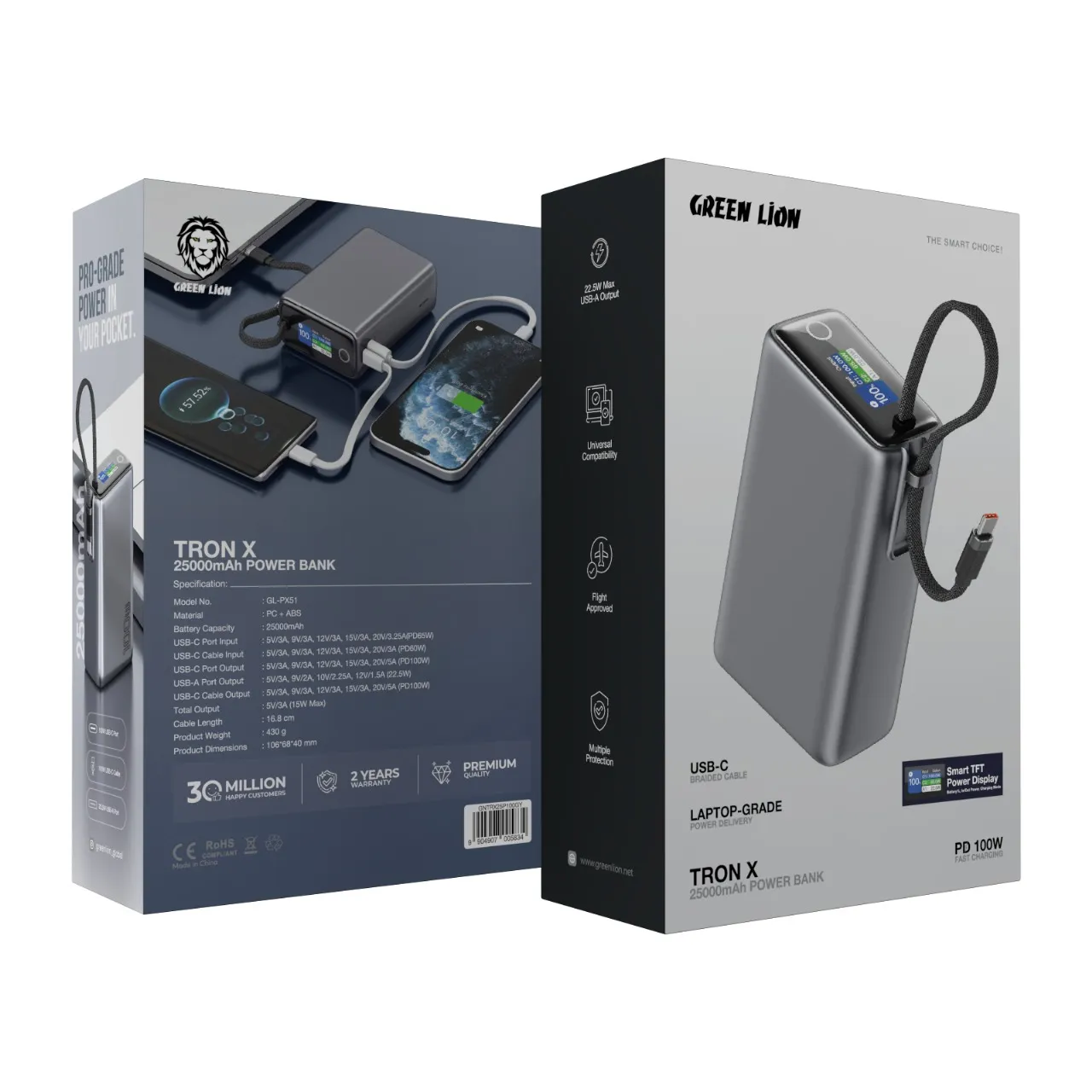 پاوربانک قابلحمل 25000 میلیآمپرساعت مدل Tron X با نمایشگر هوشمند گرین لاین