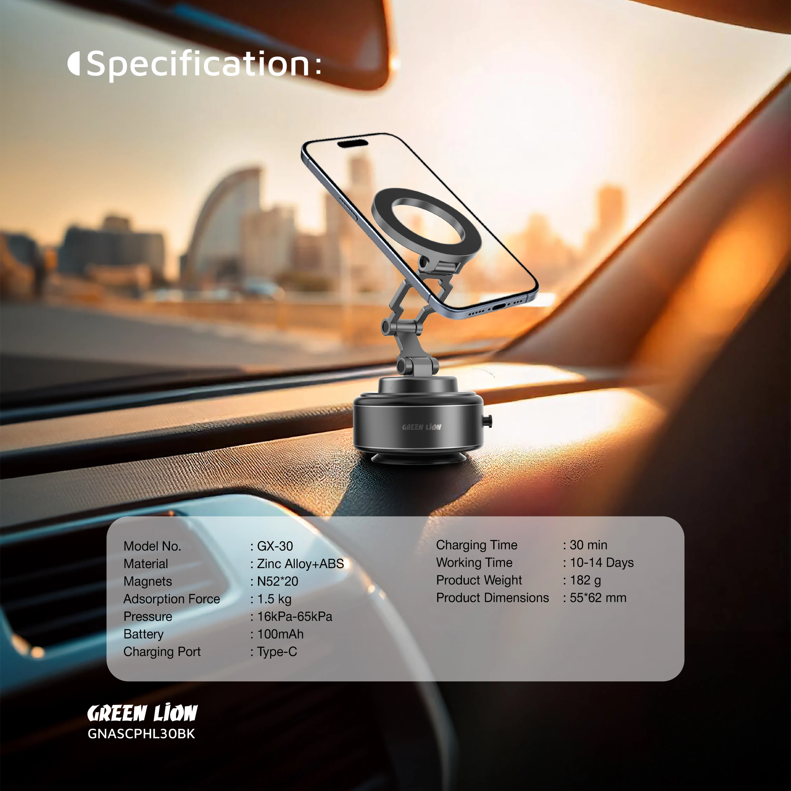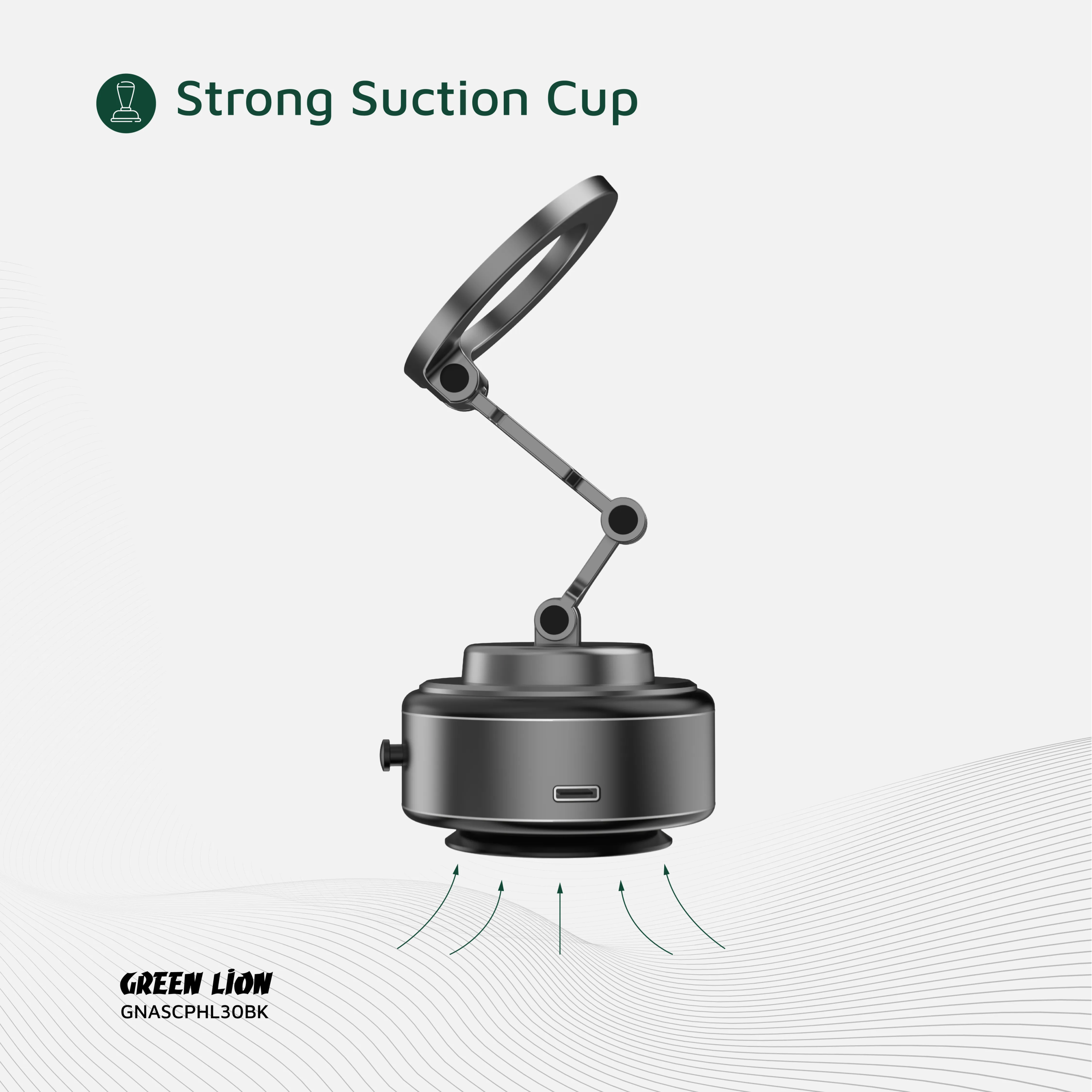پایه نگهدارنده موبایل گرین لاین مدل GX‑30 با مکش هوشمند و شارژ سریع